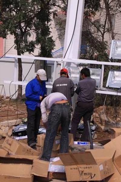 圖4為工人們進(jìn)行明光裝飾的場(chǎng)景