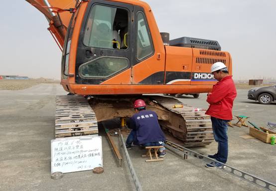 驗(yàn)收小組檢測山皮石墊層地基反應(yīng)模量