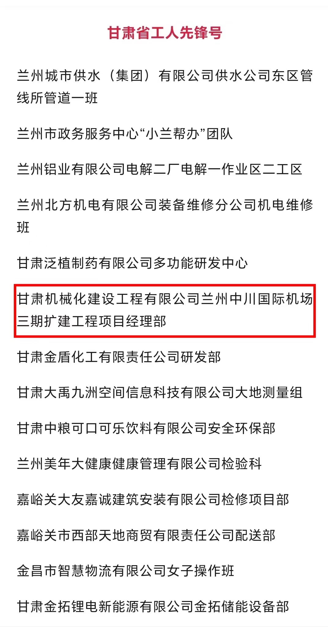 近日,甘肅省總工會(huì)發(fā)布了2024年甘肅省“五一勞動(dòng)獎(jiǎng)和甘肅省工人先鋒號(hào)”擬表彰對(duì)象的公示。我司蘭州中川國(guó)際機(jī)場(chǎng)三期擴(kuò)建工程項(xiàng)目經(jīng)理部被授予“甘肅省工人先鋒號(hào)”,該獎(jiǎng)的獲得既是對(duì)項(xiàng)目團(tuán)隊(duì)長(zhǎng)期拼搏奮斗的肯定,也是對(duì)公司“和諧共進(jìn)、追求卓越”企業(yè)精神的肯定。
