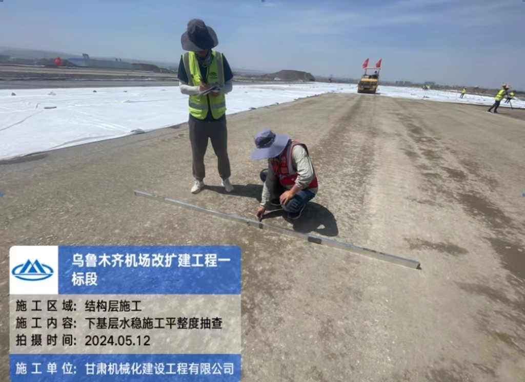 2024年5月11日,伴隨著第一車水泥穩(wěn)定砂礫混合料緩緩倒入攤鋪機料斗,標志著由我司承建的烏魯木齊機場一標段水穩(wěn)基層施工正式拉開序幕。