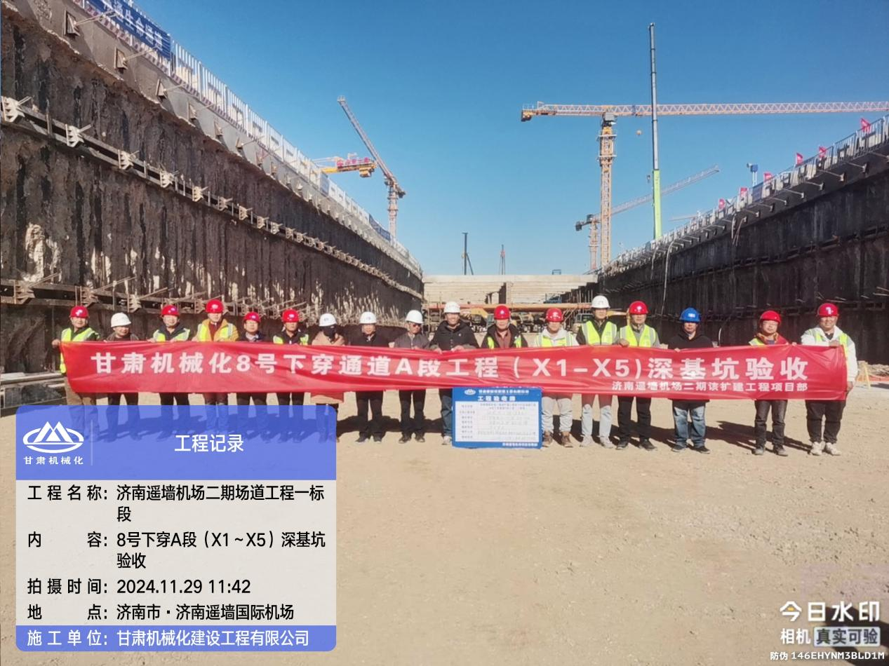 11月29日,由我司承建的濟(jì)南遙墻機(jī)場(chǎng)二期改擴(kuò)建工程一標(biāo)段下穿通道工程危大工程及地基處理工程順利通過(guò)階段性驗(yàn)收。